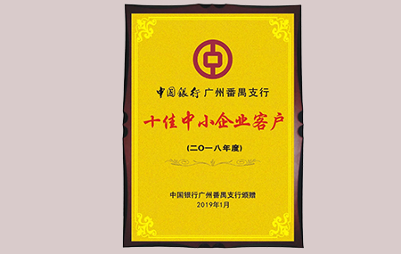 中国银行股份有限公司广州番禺支行向广州和记娱乐医药科技有限公司颁赠2018年度“十佳中小企业客户”牌匾...